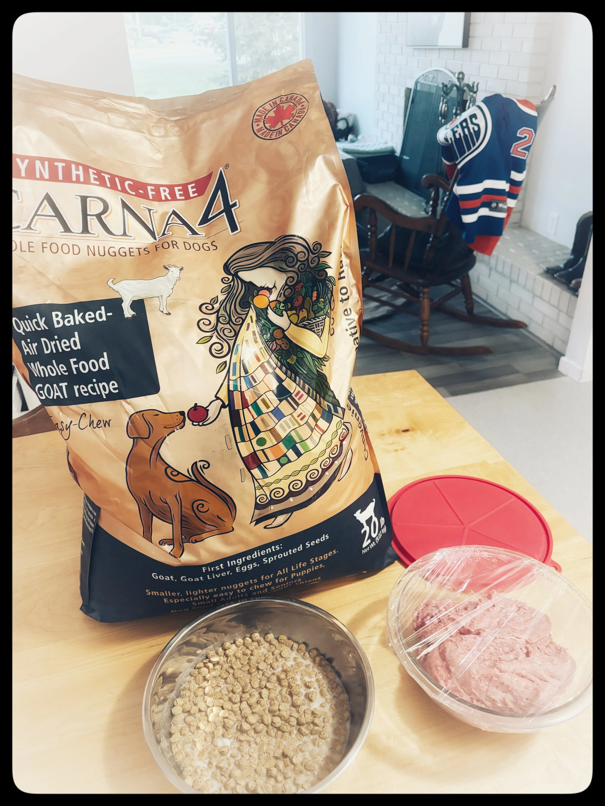 I include baked kibble from Carna4 as part of their diet as well. Choosing Carna4 was a very intentional decision. It’s gently baked and made from real food ingredients, which was important to me. I wanted a kibble option that still fit with my philosophy of feeding as naturally as possible. It helps puppies transition smoothly to their new homes, since every family will have their own feeding routine.